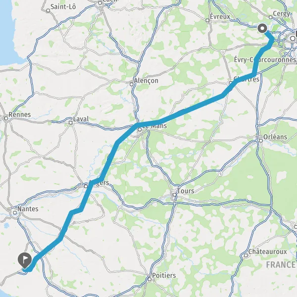 Prendre à droite et rejoindre A11 E50. Continuer sur 142 kilomètres
