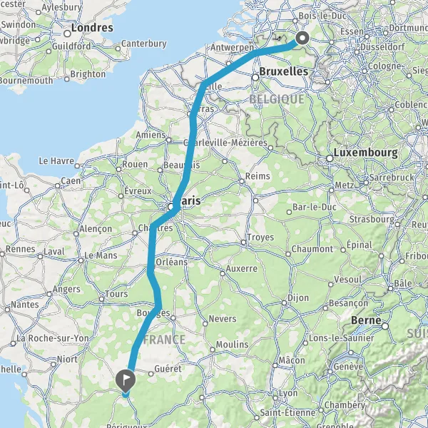 Continuer E5 (L'Aquitaine) sur 71 kilomètres