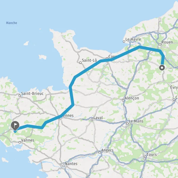 Continuer N12 (Rue de Brest) sur 16 kilomètres