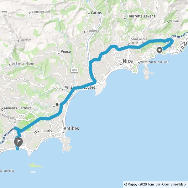 Payer 1,20 € (Péage La Turbie Echangeur) Payer 1,50 € (Péage Saint Isidore Pleine Voie) Payer 3,50 € (Péage Antibes Pleine Voie nord) 4,8 km