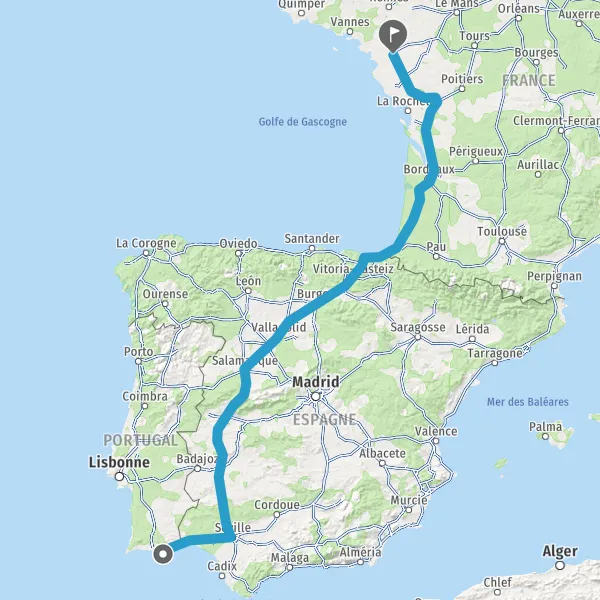 Trajet de Faro (8000) à Nantes (44000) en voiture