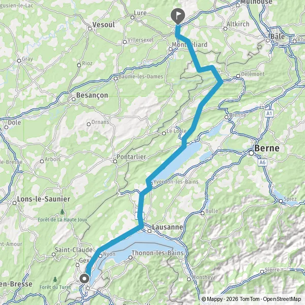 Entrer en Suisse et prendre Route de Ferney sur 750 mètres