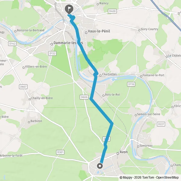 Avec le mode voiture, vous pouvez configurer vos options (type de véhicule, autoroute ou non, péage ou non, distance la plus courte), tout en ayant accès aux infos de circulation grâce à notre service d'info-trafic en temps réel. Ainsi faites des économies sur le coût ou la durée de votre voyage, en trouvant le trajet Fontainebleau Melun adapté à vos besoins.