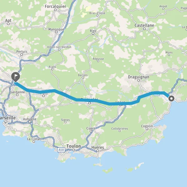 Avec le mode voiture, vous pouvez configurer vos options (type de véhicule, autoroute ou non, péage ou non, distance la plus courte), tout en ayant accès aux infos de circulation grâce à notre service d'info-trafic en temps réel. Ainsi faites des économies sur le coût ou la durée de votre voyage, en trouvant le trajet Fréjus Aix-en-Provence adapté à vos besoins.