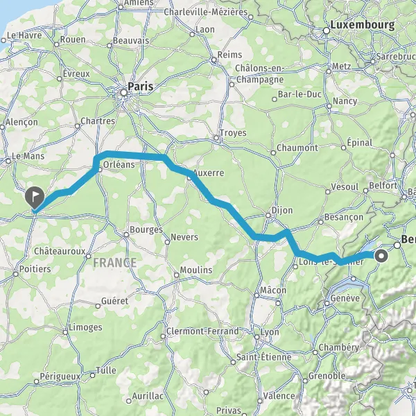 Trajet de Fribourg (1700) à Tours (37000) en voiture
