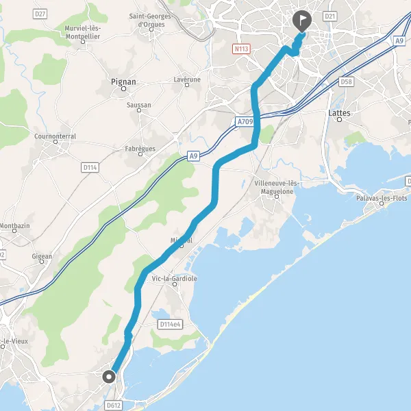 Au rond-point, prendre la 2ème sortie sur D612 (Route de Sète) et continuer sur 450 mètres