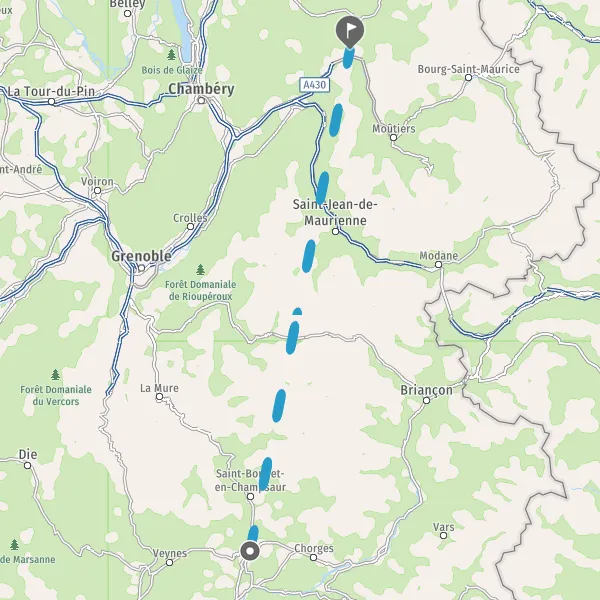 Prendre à droite et rejoindre A43 E70. Continuer sur 19 kilomètres