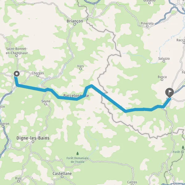 Tourner légèrement à gauche sur SS21 SS21 SS21 Strada 21 Strada 21 Strada 21 (Via Nazionale in Argentera) et continuer sur 5,1 kilomètres