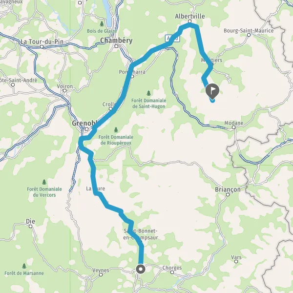 Prendre à droite et rejoindre N85 D1085 (Route de Bourg-d'Oisans). Continuer sur 800 mètres