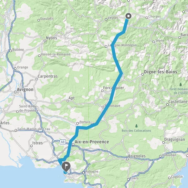 Avec le mode voiture, vous pouvez configurer vos options (type de véhicule, autoroute ou non, péage ou non, distance la plus courte), tout en ayant accès aux infos de circulation grâce à notre service d'info-trafic en temps réel. Ainsi faites des économies sur le coût ou la durée de votre voyage, en trouvant le trajet Gap Marseille adapté à vos besoins.