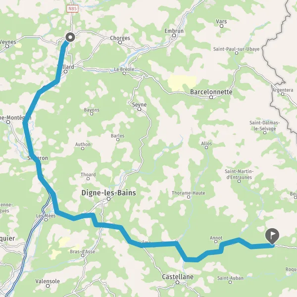Tourner à droite sur N85 et continuer sur 18 kilomètres