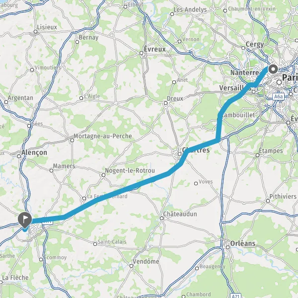 Prendre à droite et rejoindre A11 E50. Continuer sur 147 kilomètres