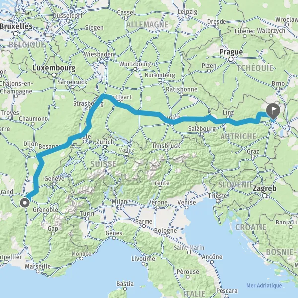 Prendre à droite et rejoindre A36 E60. Continuer sur 196 kilomètres