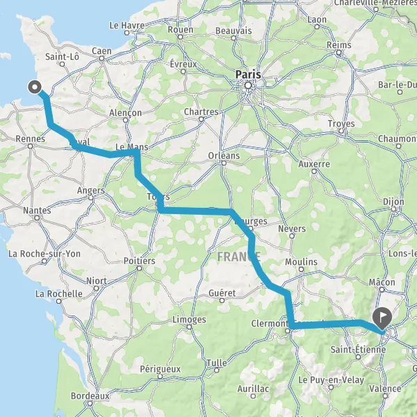 Prendre à droite et rejoindre A85 E604. Continuer sur 106 kilomètres