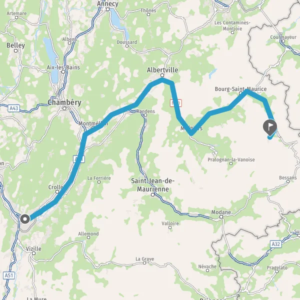 Prendre à droite et rejoindre A43 E70. Continuer sur 19 kilomètres