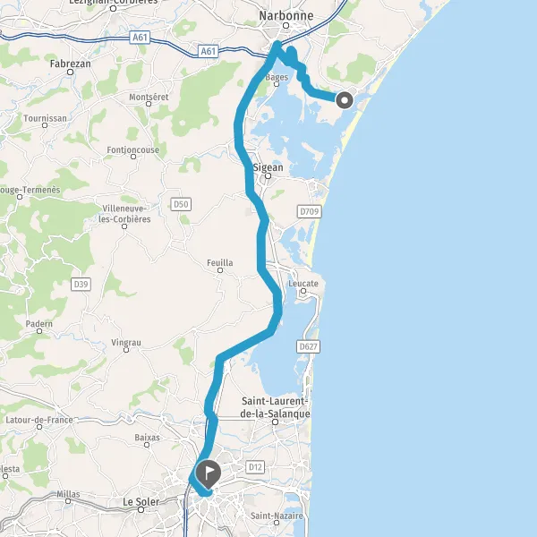 Prendre à droite et rejoindre A9 E15 E80. Continuer sur 49 kilomètres