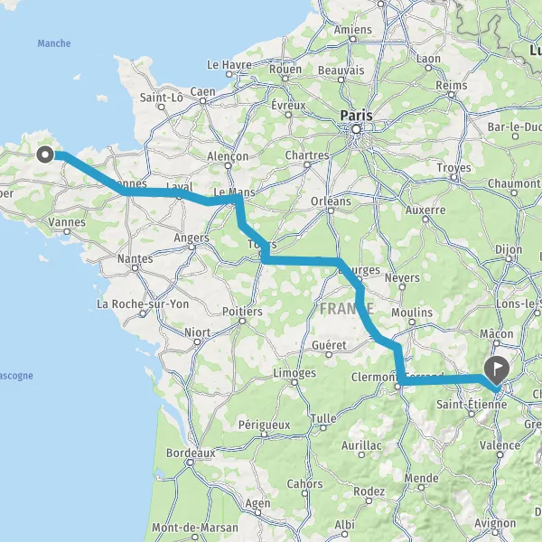 Prendre à droite et rejoindre A85 E604. Continuer sur 106 kilomètres