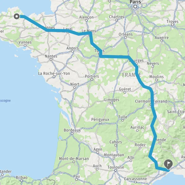 Prendre à droite et rejoindre A85 E604. Continuer sur 106 kilomètres