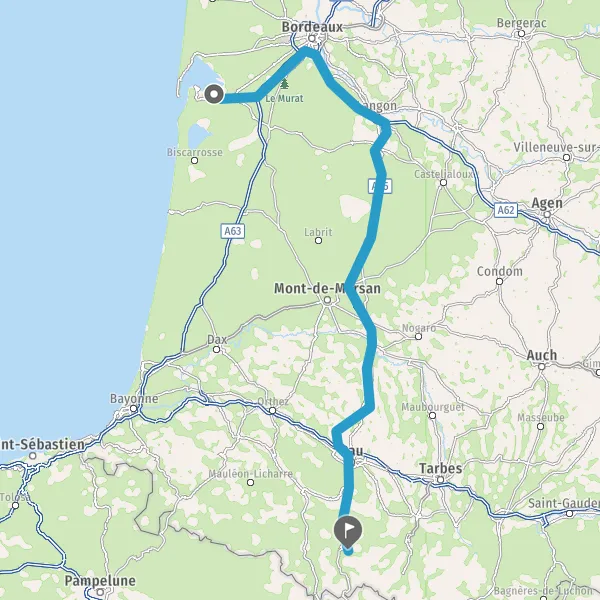 Prendre à gauche et rejoindre A63 E5 E70. Continuer sur 26 kilomètres