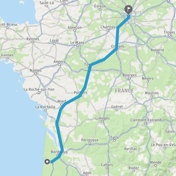 Trajet de Gujan-Mestras (33470) à Paris (75000) en voiture