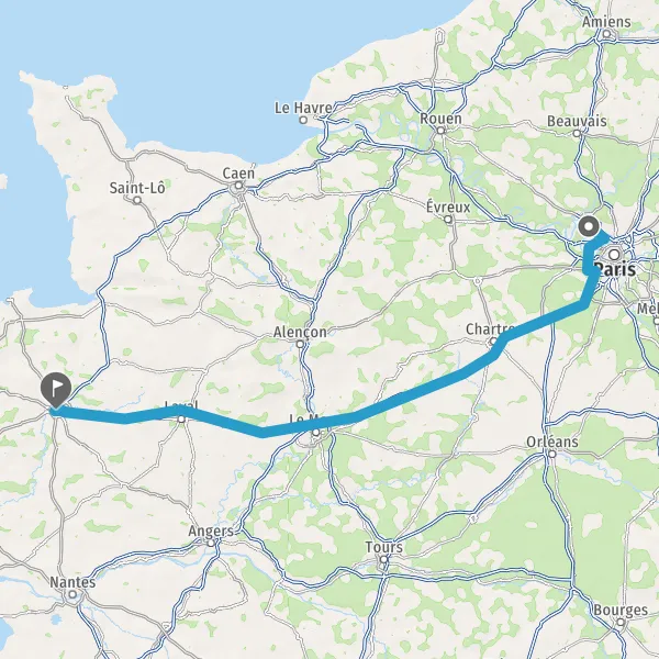Prendre à droite et rejoindre A11 E50. Continuer sur 147 kilomètres