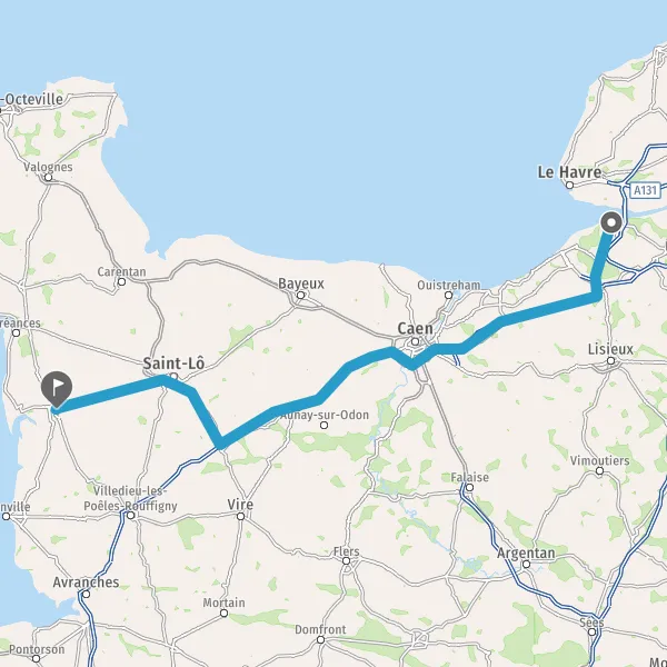 Prendre à droite et rejoindre A84 E401. Continuer sur 45 kilomètres
