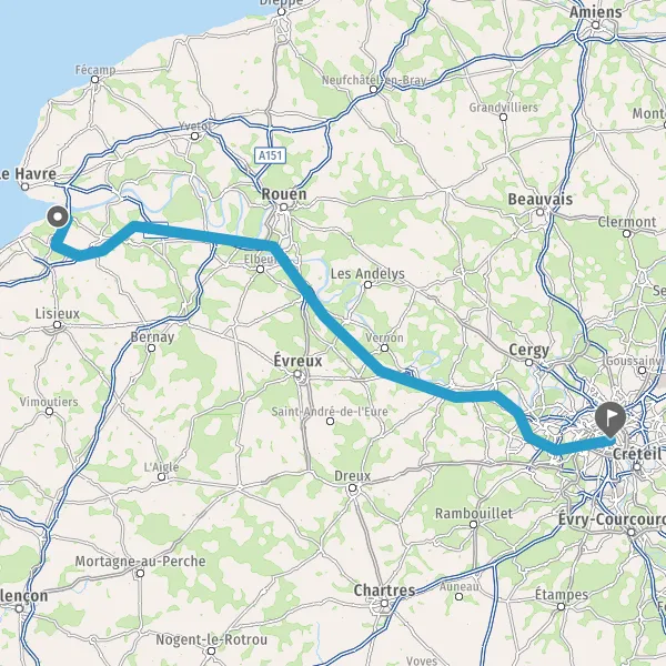 Continuer et rejoindre A13 E46. Continuer sur 79 kilomètres