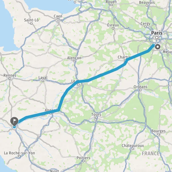 Prendre à droite et rejoindre A11 E50. Continuer sur 147 kilomètres