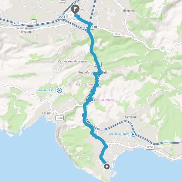 A50AubagneMarseilleAix-en-ProvenceLa Seyne-sur-MerToulon