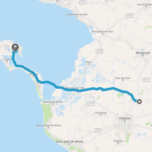 Au rond-point, prendre la 1ère sortie sur D948 (Route de Noirmoutier) et continuer sur 2,3 kilomètres