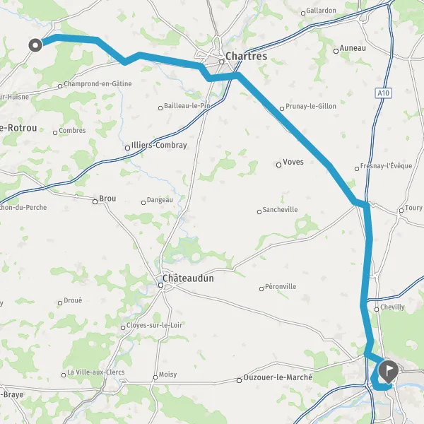 Prendre à droite et rejoindre D29 (Rue de Voves). Continuer sur 500 mètres