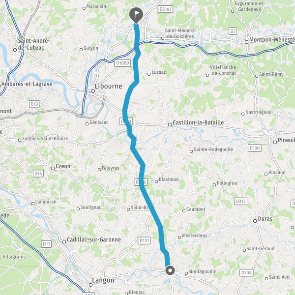 Au rond-point, prendre la 1ère sortie sur D670 (Route de Libourne) et continuer sur 10 kilomètres