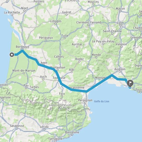 Itinéraire en voiture de La Teste-de-Buch 33115-33260 à Marseille 13001-13016