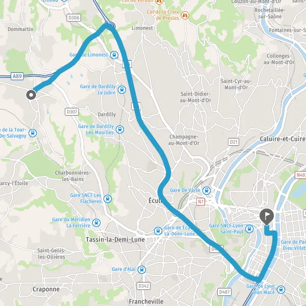 Ne perdez plus votre temps à chercher votre billet pas cher ou votre trajet le plus rapide ou avec le moins de km, Mappy vous permet de comparer tous les modes de transport et tous les horaires pour votre itinéraire de La Tour-de-Salvagny à Lyon.