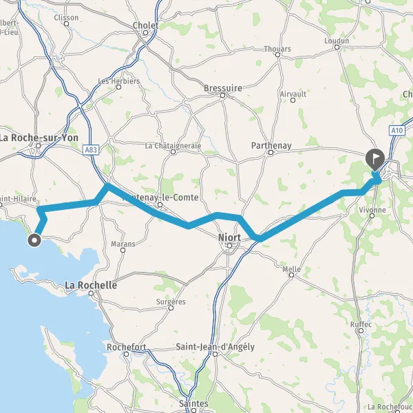Prendre à droite et rejoindre A83. Continuer sur 69 kilomètres