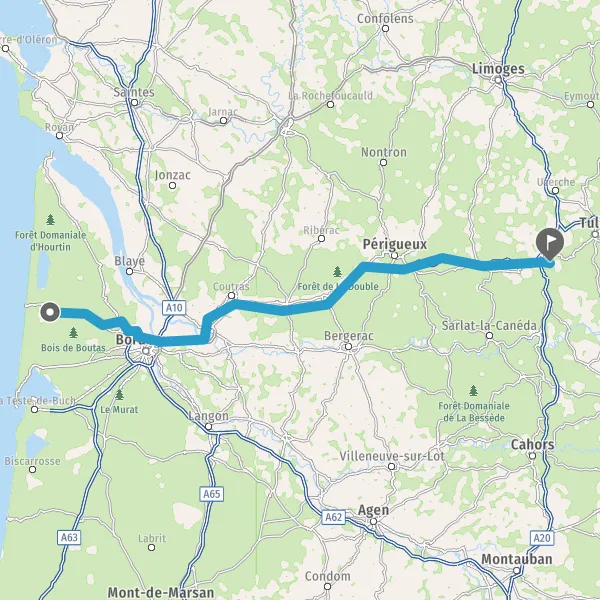 Au rond-point, prendre la 1ère sortie sur D6 (Avenue de Bordeaux) et continuer sur 16 kilomètres