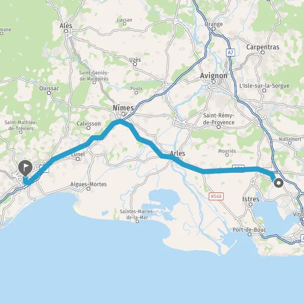 Au rond-point, prendre la 2ème sortie sur D113 (Route Nationale 113) et continuer sur 2,8 kilomètres