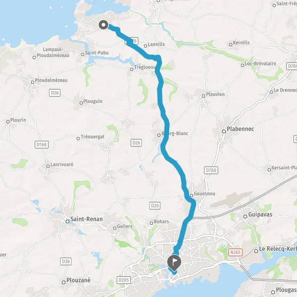 Tourner légèrement à droite sur D3 (Rue de l'Aber Benoît) et continuer sur 150 mètres