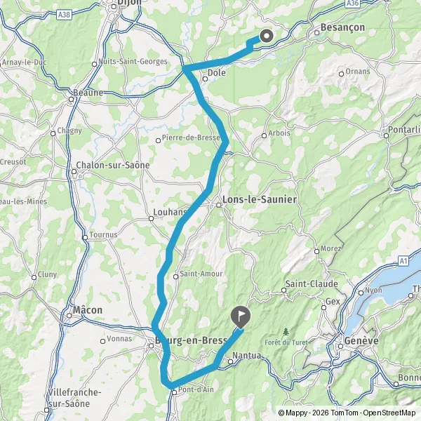 Prendre à gauche et rejoindre A36 E60. Continuer sur 26 kilomètres