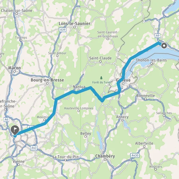 Avec le mode voiture, vous pouvez configurer vos options (type de véhicule, autoroute ou non, péage ou non, distance la plus courte), tout en ayant accès aux infos de circulation grâce à notre service d'info-trafic en temps réel. Ainsi faites des économies sur le coût ou la durée de votre voyage, en trouvant le trajet Lausanne Lyon adapté à vos besoins.