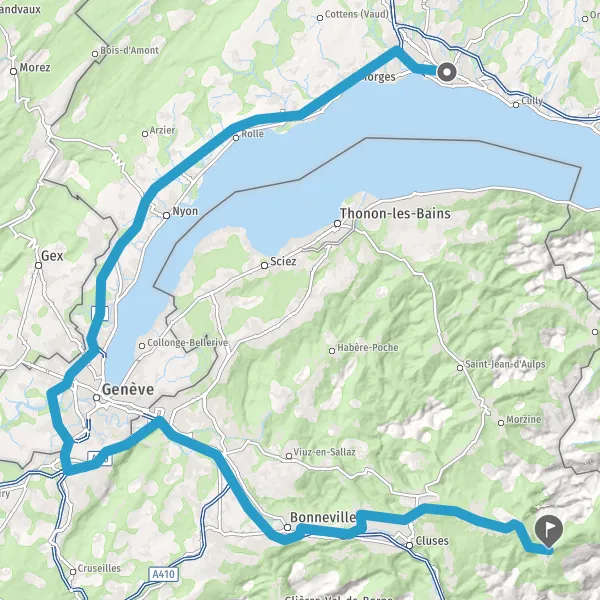 Prendre à gauche et rejoindre D1205 (Route de Cluses). Continuer sur 40 mètres