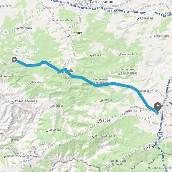 Tourner légèrement à gauche sur D117 (Avenue de Quillan) et continuer sur 7,5 kilomètres