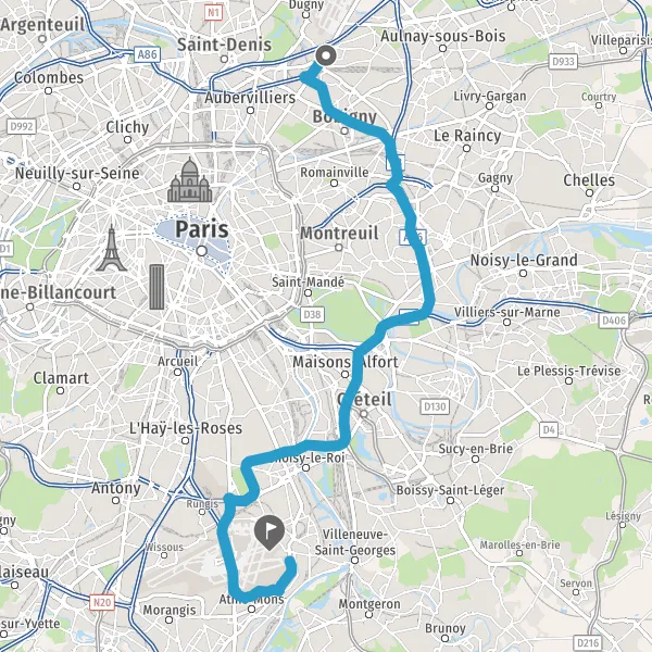 Prendre à droite et rejoindre A86. Continuer sur 3,3 kilomètres