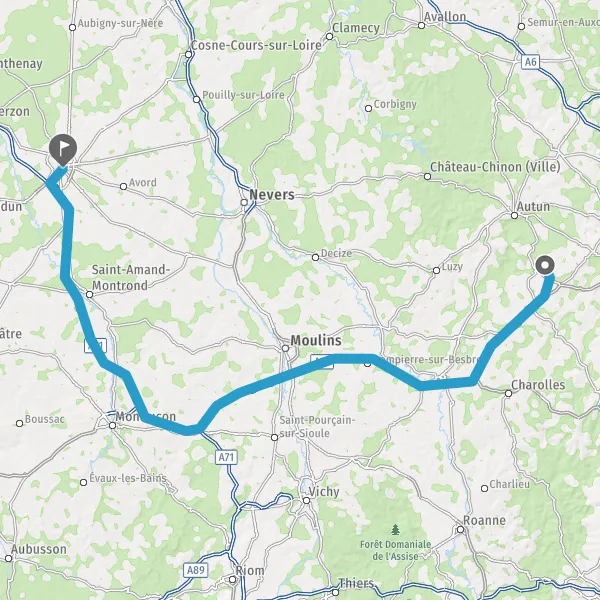 Prendre un ticket (Péage Molinet Est) Payer 1,30 € (Péage Molinet Ouest) Prendre un ticket (Péage Montbeugny Est) Payer 1,90 € (Péage Montbeugny Ouest) Prendre un ticket (Péage Le Montet Est) Payer 1,00 € (Péage Le Montet Ouest) Prendre un ticket (Péage Deux chaises) 13,8 km