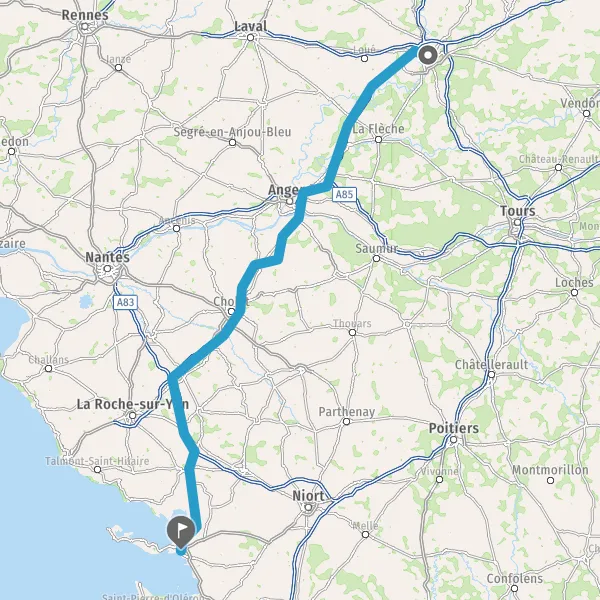 Prendre à gauche et rejoindre A83 E3. Continuer sur 33 kilomètres