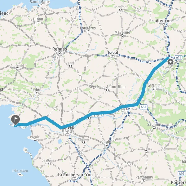 Prendre à droite et rejoindre A11 E50. Continuer sur 3,2 kilomètres