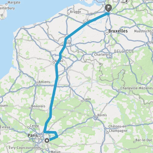 Continuer et rejoindre A1 A1 E15 E19. Continuer sur 121 kilomètres