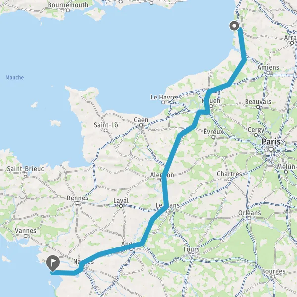 Continuer E501 (L'Océane) sur 165 kilomètres