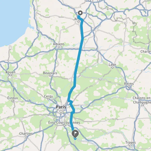 Prendre à droite et rejoindre A6a E5. Continuer sur 38 kilomètres