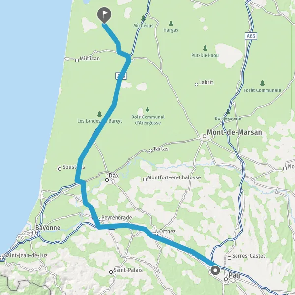 Prendre à gauche et rejoindre A64. Continuer sur 63 kilomètres